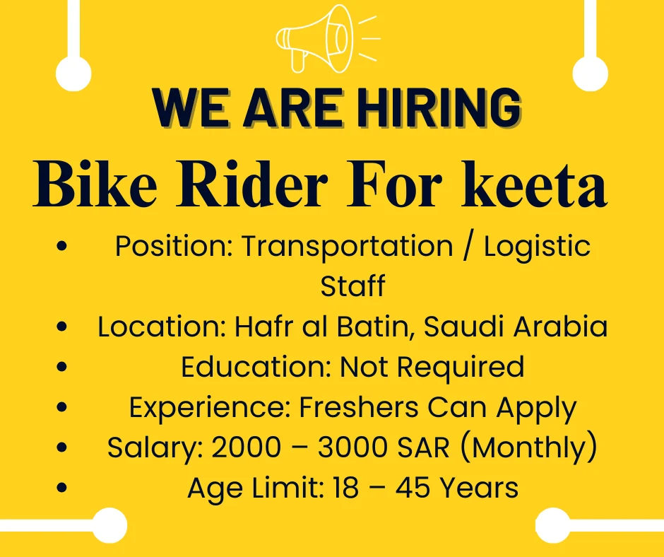 Humaray client ko drivers aur delivery staff ki zaroorat hai jo Saudi Arabia me apni services provide kar saken. Jo candidates apply karna chahte hain, unke liye neeche requirements di gayi hain: