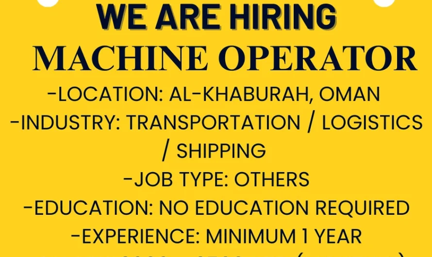 Location: Al-Khaburah, OmanIndustry: Transportation / Logistic / Shipping / MarineJob Type: OthersEducation: No Education RequiredExperience: Minimum 1 YearSalary: 2000 – 2500 AED (Monthly) Job Description:Humein … Read more
