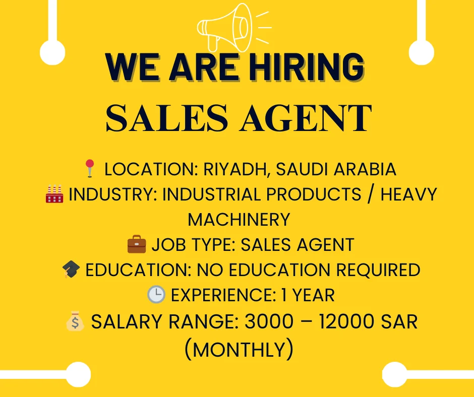 Agar aap sales ke liye passionate hain aur Riyadh ke heavy equipment sector me career banana chahte hain, to apna Resume send karein: